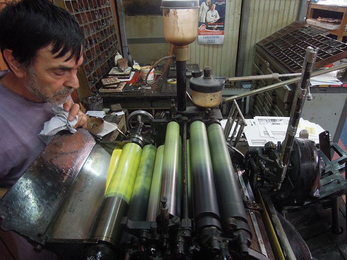 Cartão pessoal composto e impresso em tipografia.